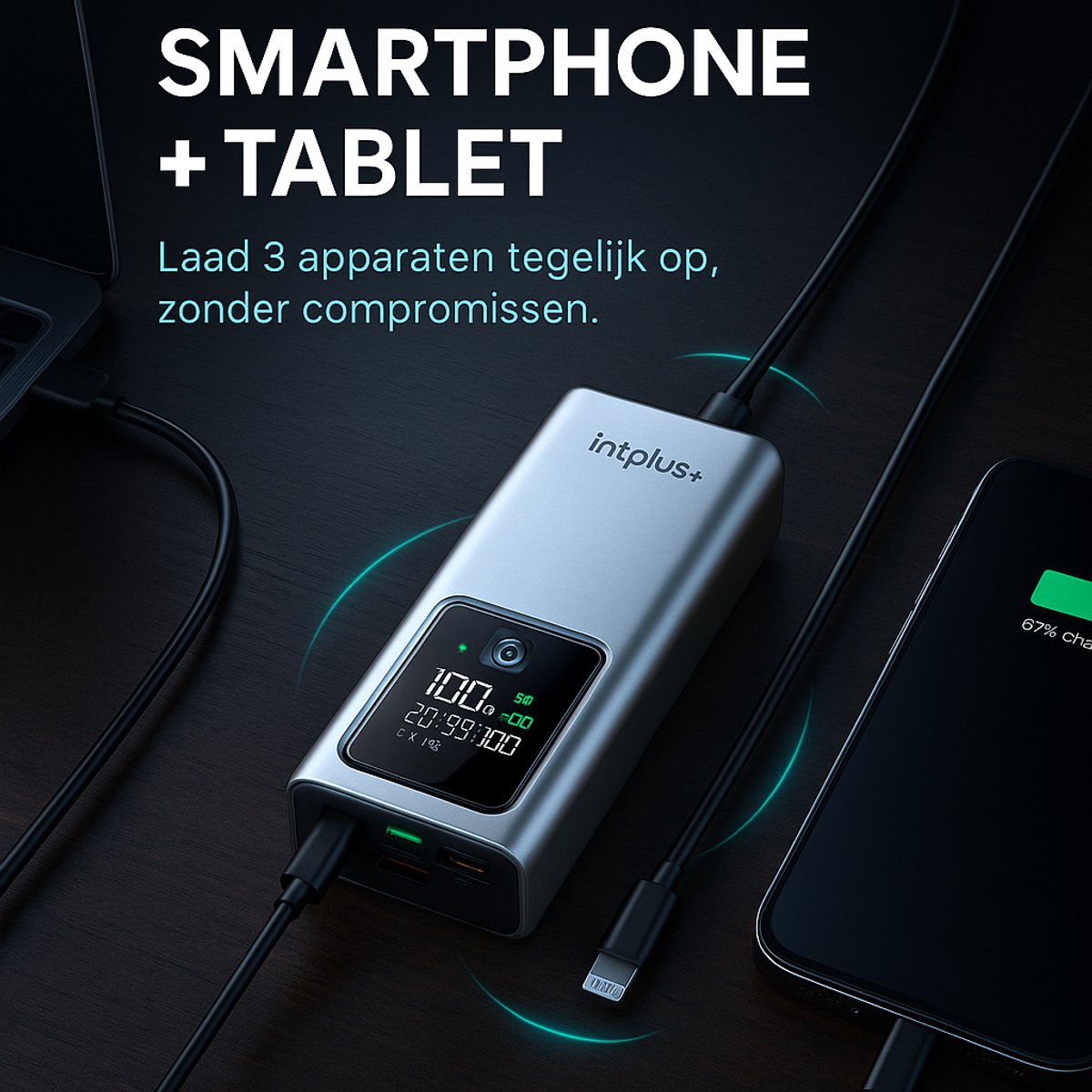 20.000 mAh capaciteit – genoeg energie voor meerdere laadbeurten